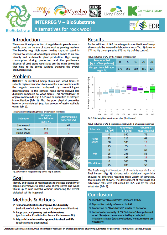 Het plantaardige materiaal (in casu hennep) dat de matrix vormt van het BioSubstraat is gevoelig voor biologische afbraak, interessant vanuit recycling oogpunt echter vroegtijdige biodegradatie leidt tot functie- en structuurverlies. Hoe dit dilemma op te lossen nl. een biobased vertrager van biologische afbraak.