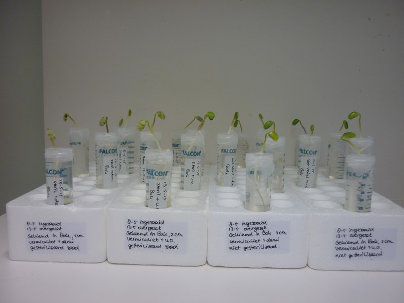 Daarnaast loopt er nu een proef om te zien of algen de stresstolerantie van soja zaailingen beïnvloeden zowel op bioassay niveau als op het niveau van bladgenexpressie.
