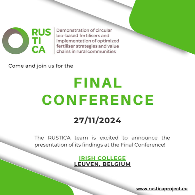 De RUSTICA Final Conference biedt een uitstekende gelegenheid om de toekomst van biobased meststoffen en hun rol bij het promoten van duurzame landbouw in heel Europa te verkennen. De conferentie belicht belangrijke technologische ontwikkelingen, marktontwikkelingen en het regelgevingslandschap rondom biobased meststoffen. Deelnemers krijgen ook inzicht in regionale benaderingen voor het implementeren van deze oplossingen, gevolgd door paneldiscussies over de belangrijkste resultaten van het project en internationale perspectieven.